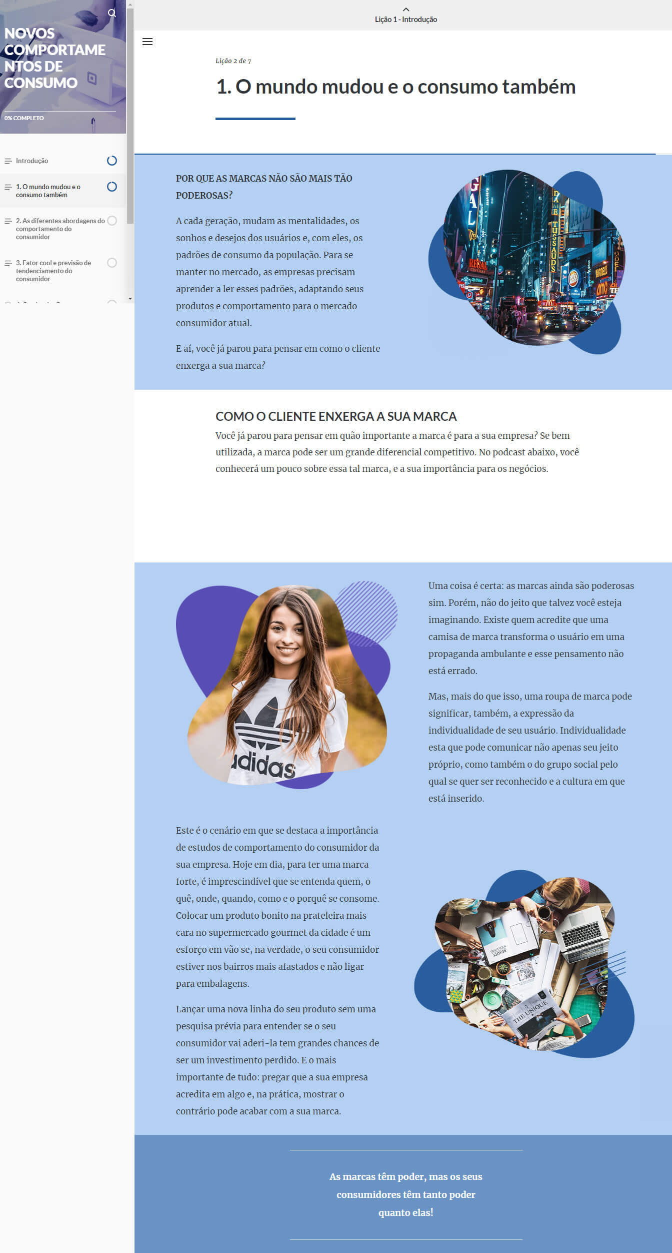 Trata-se de produtos totalmente responsivos, ou seja, podem ser acessados por meio de computador, tablet ou smartphone. Além disso, podem ser produzidos em formato One-page (mais moderno, com todo o conteúdo do capítulo em uma página única) ou no tradicional formato de slides.